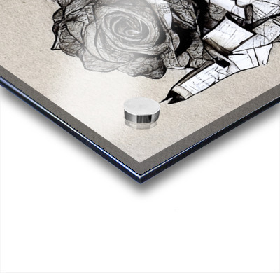 Printed to the edge - Ready to hang - provided with 4 premium polished aluminum stand off ( wall screws and mounting hardware provided )
